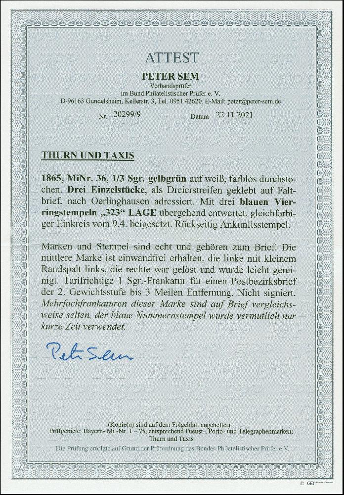 | Prüfgebiet: | Altdeutschland Thurn und Taxis |