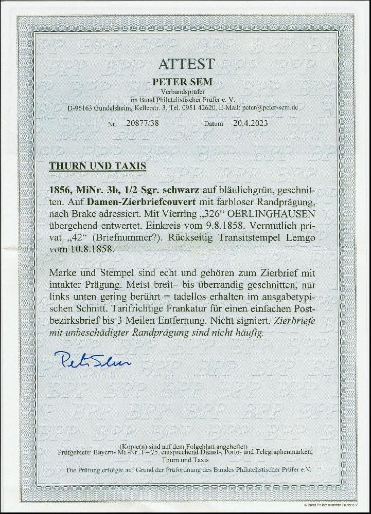 | Prüfgebiet: | Altdeutschland Thurn und Taxis |