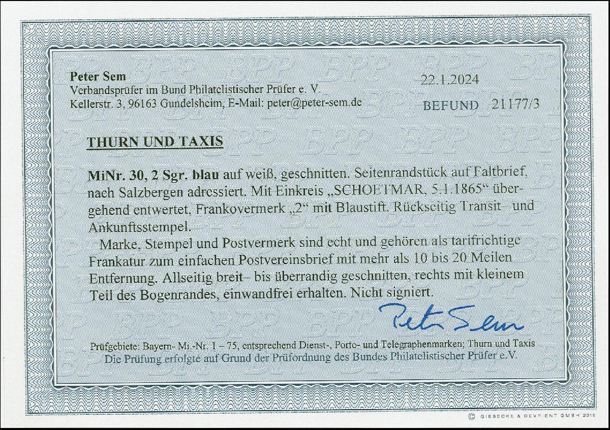 | Prüfgebiet: | Altdeutschland Thurn und Taxis |