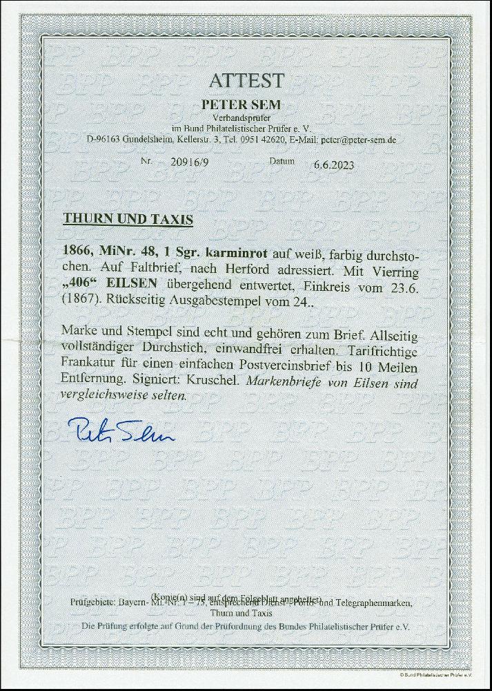 | Prüfgebiet: | Altdeutschland Thurn und Taxis |