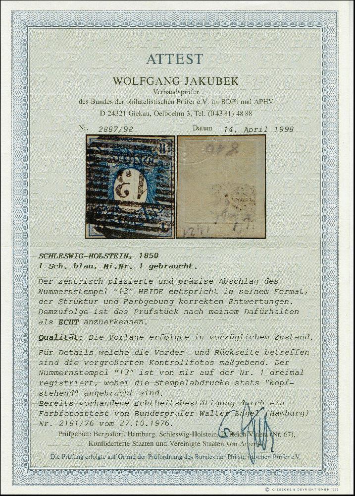 | Prüfer: | Jakubek, Wolfgang (BPP (Bund Philatelistischer Prüfer)) |