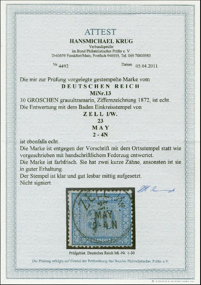 | Prüfer: | Krug, Hansmichael (BPP (Bund Philatelistischer Prüfer)) |