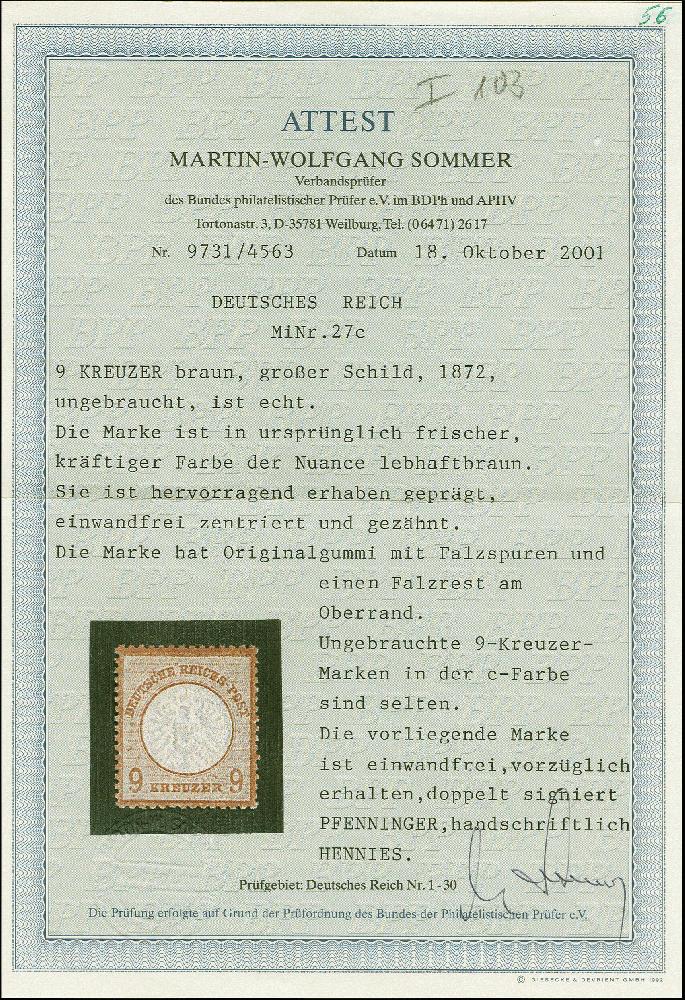 | Prüfer: | Sommer, Martin-Wolfgang (BPP (Bund Philatelistischer Prüfer)) |