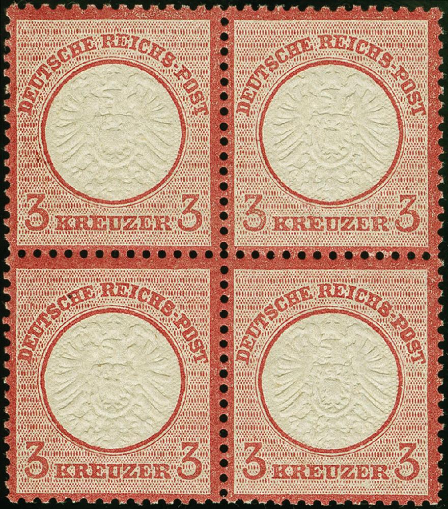 | Zusatzinformationen und Suchstichworte: | 383. Auktion Heinrich Köhler 14.–15. & 18.–23. März 2024 Los 7006 Deutsches Reich, 1872 Grosser Brustschild 3 Kreuzer karmin im Viererblock, postfrisch, in tadelloser Erhaltung, unsigniert mit Fotoattest Jäschke-L. BPP (2023) Ausruf 100,00 EUR |