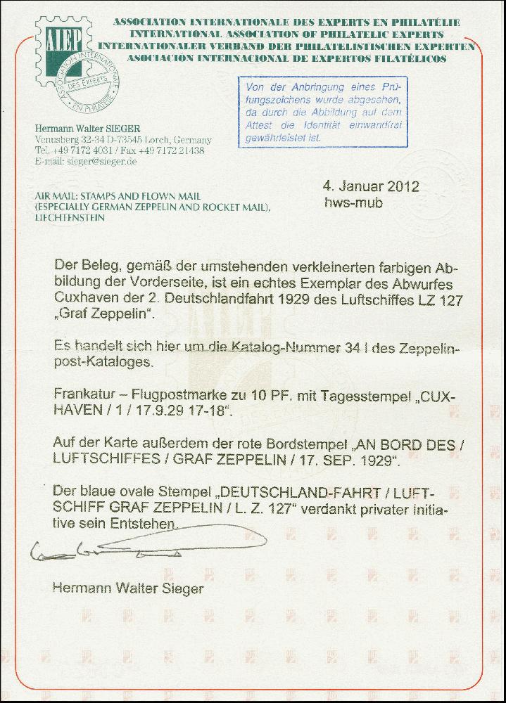 | Prüfer: | Sieger, Hermann Walter (AIEP (Association internationale des experts en philatélie)) |