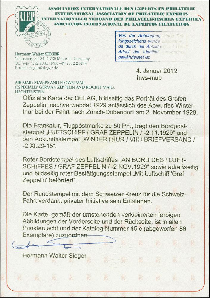| Prüfgebiet: | Deutsches Reich Zeppelinpost (Belege) |