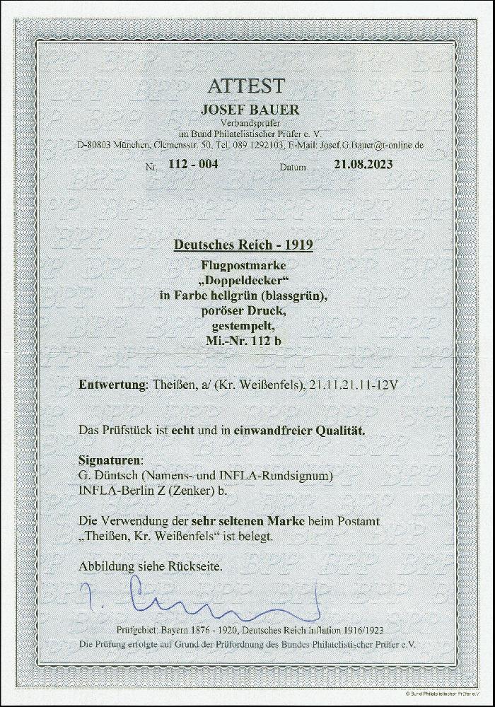 | Prüfer: | Bauer, Josef (BPP (Bund Philatelistischer Prüfer)) |