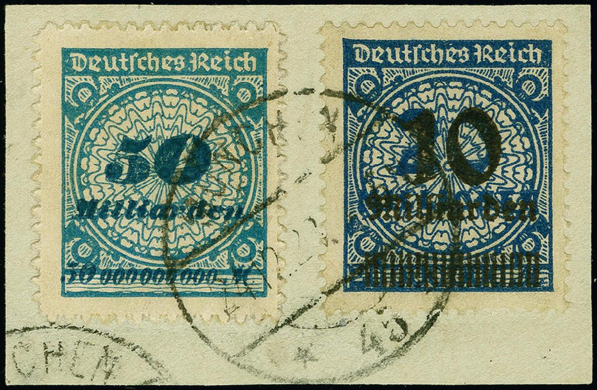 | Zusatzinformationen und Suchstichworte: | 383. Auktion Heinrich Köhler 14.–15. & 18.–23. März 2024 Los 2175 Deutsches Reich, 1918/23 Inflationsausgaben 1923, Korbdeckel 50 Mrd. durchstochen, farbfrisch und sehr gut durchstochen, zusammen mit Zufrankatur mit Stempel "MÜNCHEN 24.12.23" auf kleinem Briefstück, tadellos, sign. Peschl sowie Fotoattest Bauer BPP (2023) Ausruf 120,00 EUR |