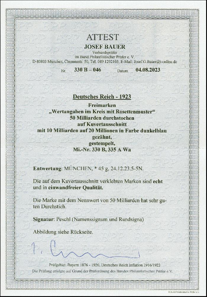 | Prüfer: | Bauer, Josef (BPP (Bund Philatelistischer Prüfer)) |