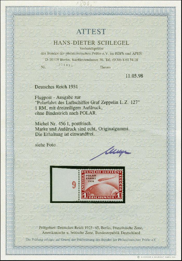 | Prüfer: | Schlegel, Hans-Dieter (BPP (Bund Philatelistischer Prüfer)) |