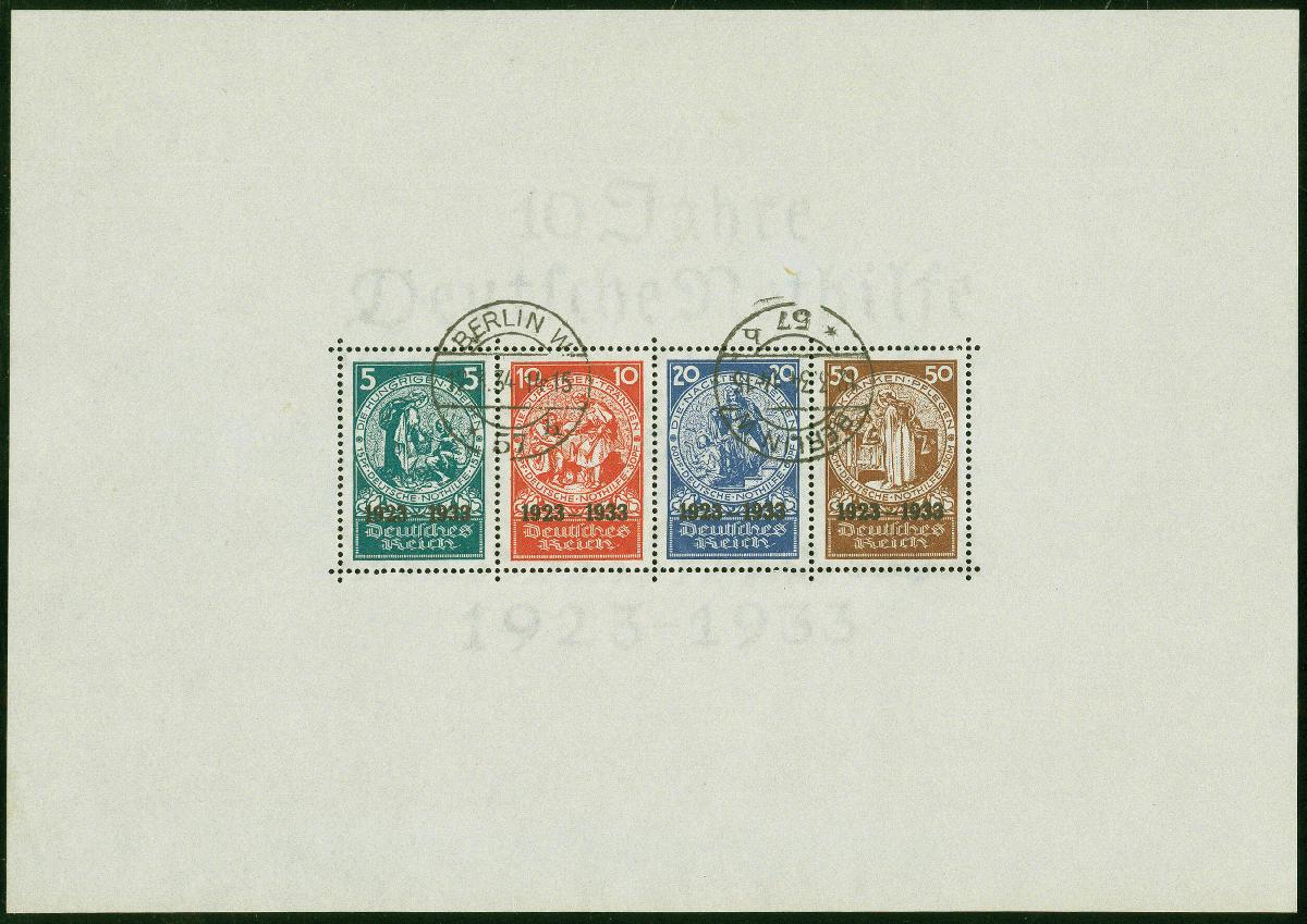 | Zusatzinformationen und Suchstichworte: | 383. Auktion Heinrich Köhler 14.–15. & 18.–23. März 2024 Los 2199 Deutsches Reich, 1933/45 Drittes Reich 1933, Nothilfe-Block, sauber gestempelt "BERLIN W 57 12.3.34", einwandfrei, Fotoattest D. Schlegel BPP (2001) Ausruf 2.000,00 EUR |