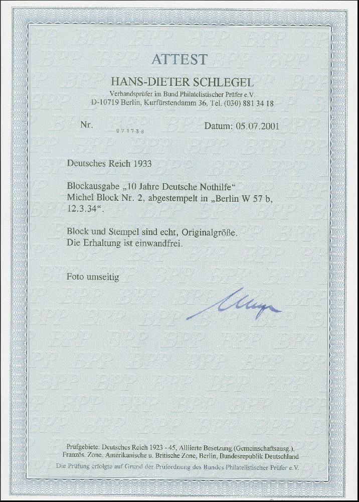 | Prüfgebiet: | Deutsches Reich Blocks 1930 - 1937 |