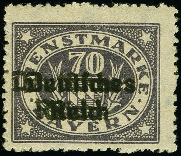 | Zusatzinformationen und Suchstichworte: | 383. Auktion Heinrich Köhler 14.–15. & 18.–23. März 2024 Los 7027 Deutsches Reich Dienst Regierung Wiesbaden 1920, Bayern-Abschiedsausgabe 70 Pfennig mit doppeltem Aufdruck, ungebraucht mit leichtem Bug und herstellungsbedingter sogenannter Nähmaschinenzähnung, optisch ansprechendes Exemplar dieser nicht häufigen Aufdruck-Abart, doppelt signiert Peschl BPP und Fotoattest Bauer BPP (2023 Ausruf 150,00 EUR |