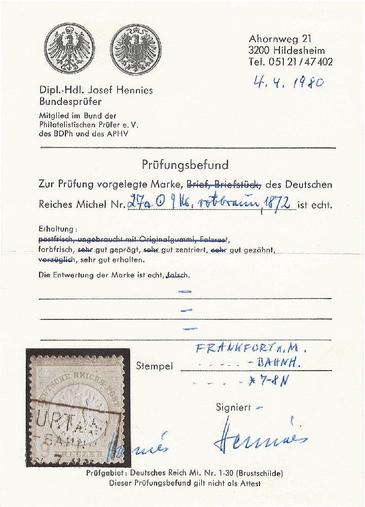 | Zusatzinformationen und Suchstichworte: | Deutsches Reich Nr.27a gestempelt |