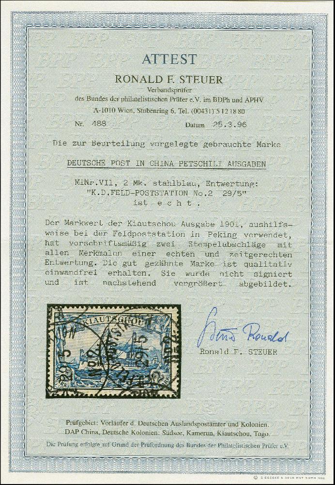 | Prüfer: | Steuer, Ronald F. (BPP (Bund Philatelistischer Prüfer)) |