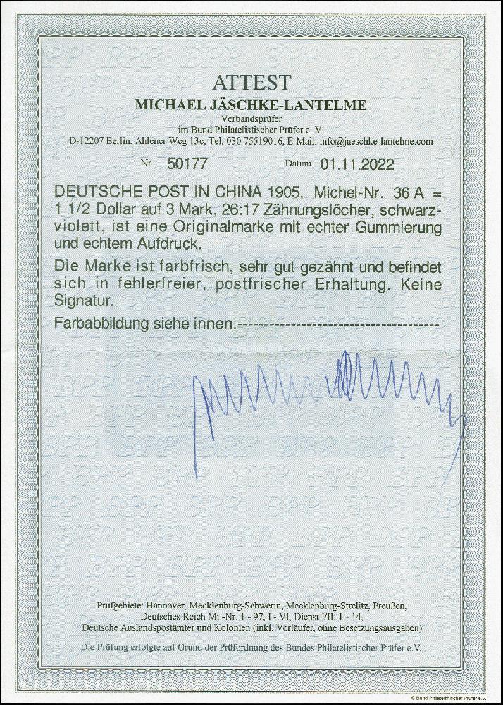 | Prüfer: | Jäschke-Lantelme, Michael (BPP (Bund Philatelistischer Prüfer)) |