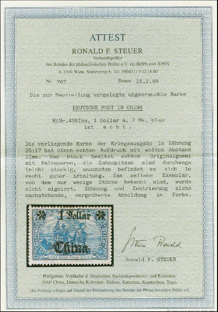 | Prüfer: | Steuer, Ronald F. (BPP (Bund Philatelistischer Prüfer)) |