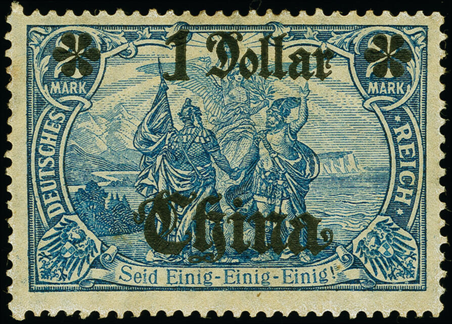 | Zusatzinformationen und Suchstichworte: | 383. Auktion Heinrich Köhler 14.–15. & 18.–23. März 2024 Los 7059 Deutsche Auslandspost China 1906/19, Kriegsdruck 1 Dollar auf 2 Mark, Zähnungslöcher 25:17, mit Wertaufdruck nach rechts mit Abstand 11 mm, ungebraucht mit leicht fleckigen Zahnspitzen bzw. leicht getönt, sonst in einwandfreier Erhaltung. Eine äußerst seltene Variante, bisher sind nur wenige Exemplare bekannt, Fotoattest R. Steuer BPP (1999) Ausruf 1.000,00 EUR |