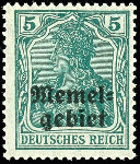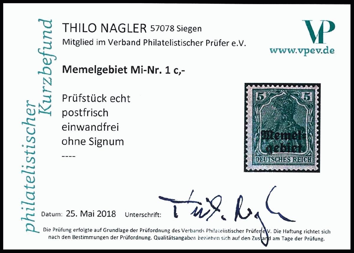 | Zusatzinformationen und Suchstichworte: | Dr. Reinhard Fischer 186. Auktion 18. - 21.Mai 2022 Los 2944 Memel 5 Pfg Germania schwärzlichbläulichgrün, tadellos postfrisch, unsigniert, seltene Farbe, Fotobefund Nagler VP (2018): "echt, postfrisch, einwandfrei", Mi. 500.- Zuschlag 155,00 EUR |