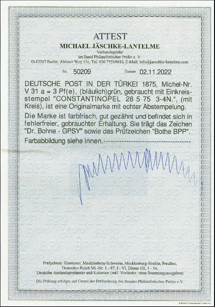 | Prüfgebiet: | Deutsche Auslandspostämter Türkei |