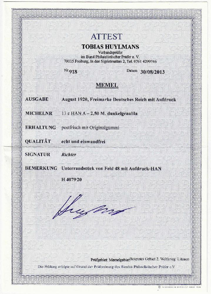 | Prüfer: | Huylmans, Tobias (BPP (Bund Philatelistischer Prüfer)) |