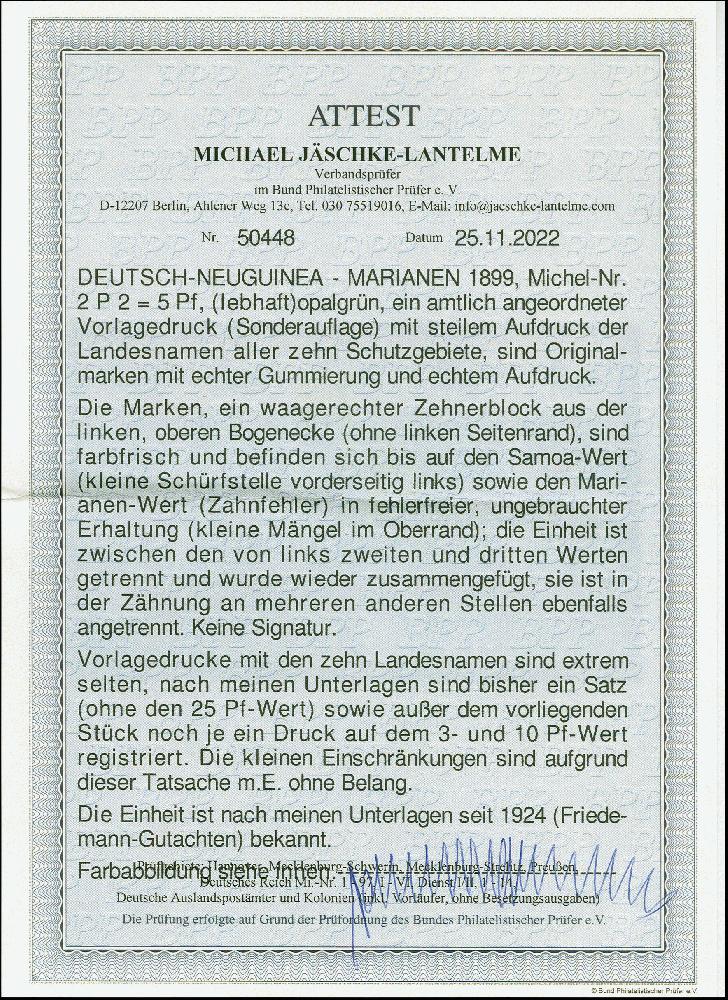 | Prüfer: | Jäschke-Lantelme, Michael (BPP (Bund Philatelistischer Prüfer)) |