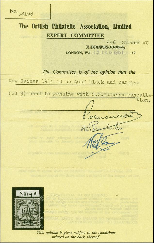 | Prüfer: | BPA, The British Philatelic Association Limit (Prüferkommission) |