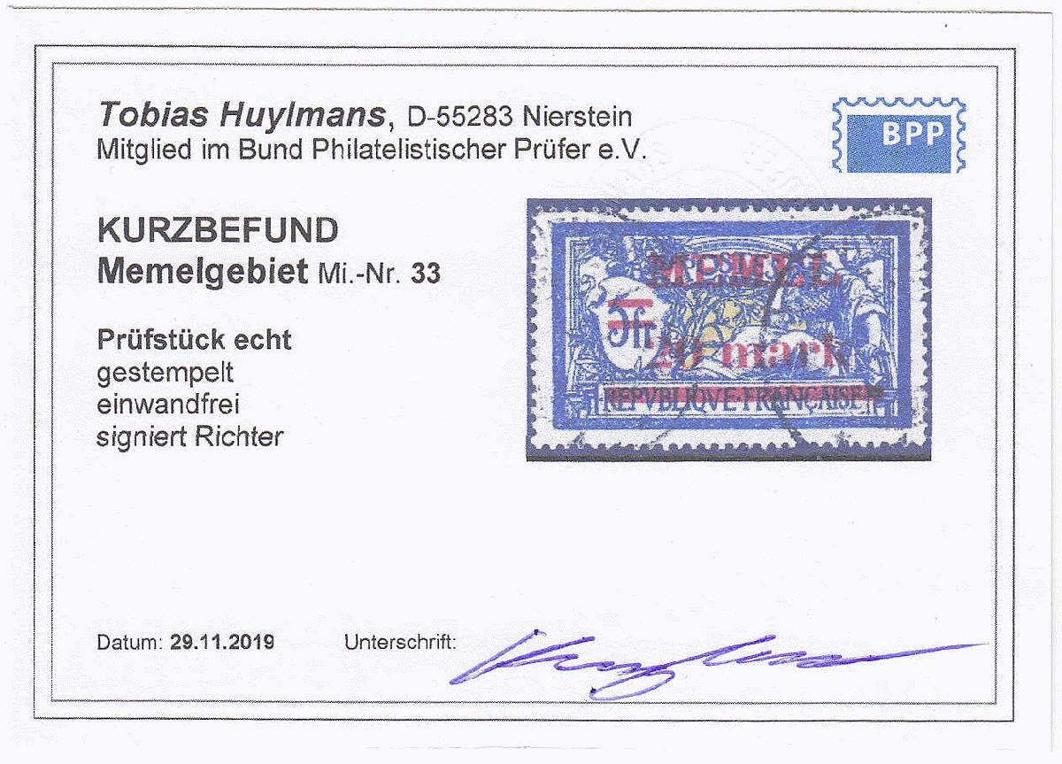 | Zusatzinformationen und Suchstichworte: | 145., 146. und 147. Teutoburger Münzauktion 28. Mai 2022 Los 4771 Memel 5 pf. auf 5 C - 20 m auf 5 Fr. Freimarken 1920, komplett gestempelter Satz, zusätzlich noch dabei Nr. 18 c, Nr. 20 a, Nr. 21 x-z, Nr. 23 c, Nr. 25 a, Nr. 26 xa und Nr. 28 x, bis auf zwei unbedeutende Werte alle geprüft Klein, Huylmans oder Dr. Petersen BPP, Nr. 33 mit Kurzbefund Huylmans BPP (2019) >einwandfrei<. Mi. 630,-€. Zuschlag 135,00 EUR Nachverkauf |