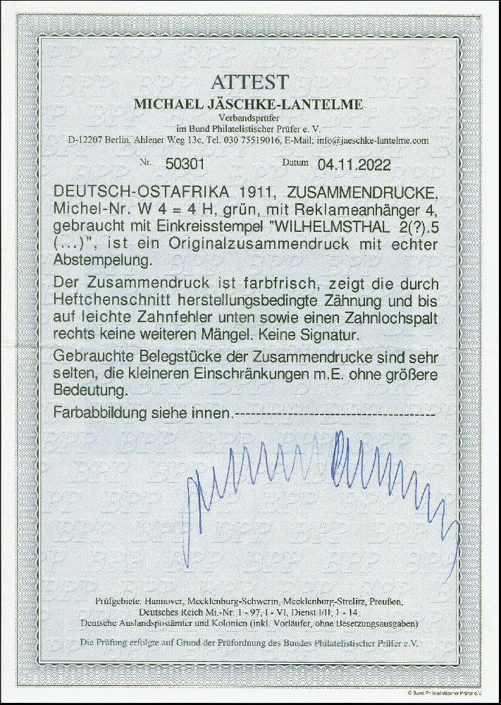 | Prüfer: | Jäschke-Lantelme, Michael (BPP (Bund Philatelistischer Prüfer)) |