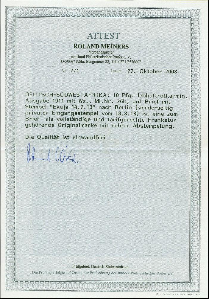 | Prüfer: | Meiners, Roland (BPP (Bund Philatelistischer Prüfer)) |