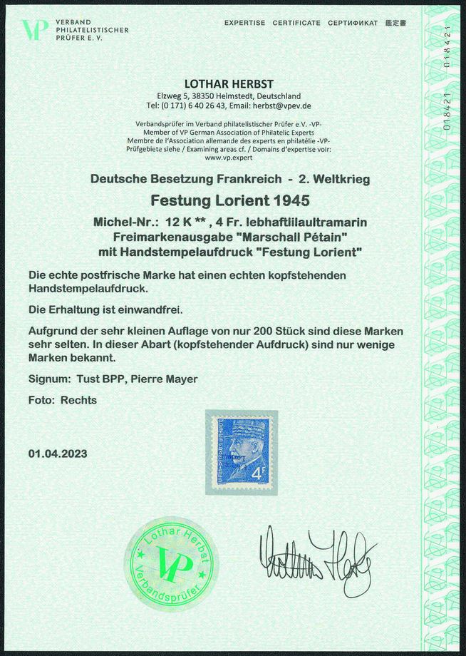 | Prüfer: | Herbst, Lothar (VP (Verband Philatelistischer Prüfer)) |