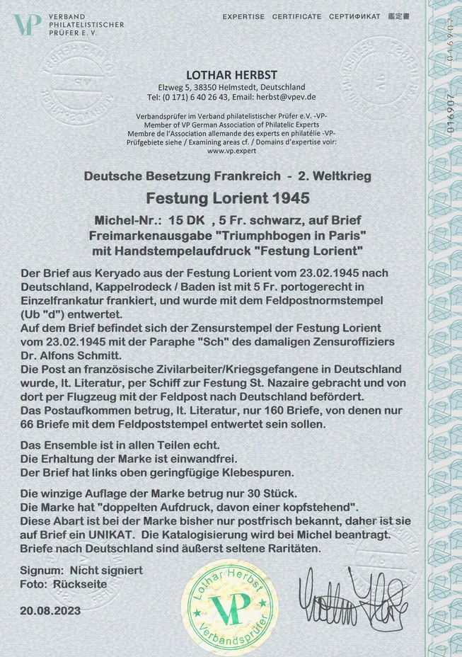 | Prüfgebiet: | Deutsche Besetzung WK 2 Frankreich Lorient |