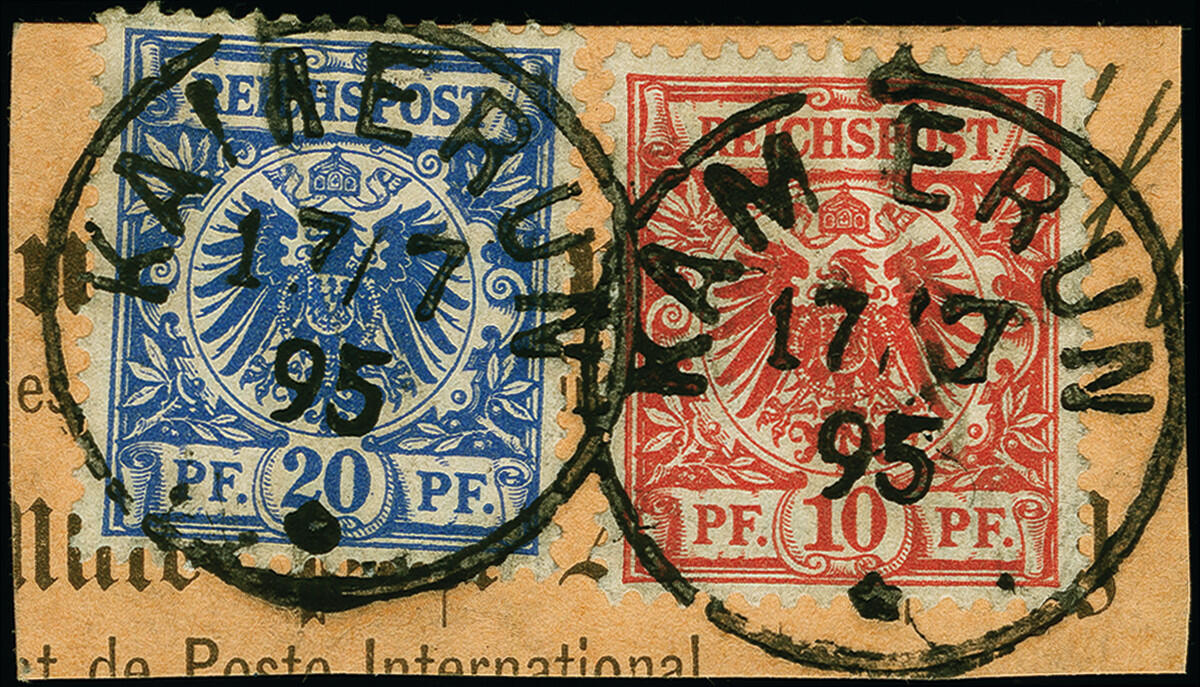 | Zusatzinformationen und Suchstichworte: | 383. Auktion Heinrich Köhler 14.–15. & 18.–23. März 2024 Los 7162 Deutsche Kolonien Kamerun, Vorläufer 1890, 10 Pfennig mittel(karmin)rot (dunkelgelb quarzend) und 20 Pfennig violettultramarin je mit klarem EKr. "KAMERUN 17.7.95" auf Postanweisungs-Briefstück in einwandfreier Erhaltung, seltene Farbe, Fotoattest Jäschke-L. BPP (2008) Ausruf 150,00 EUR |