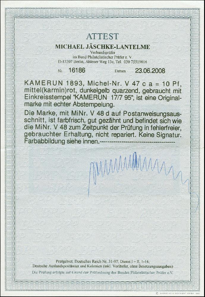 | Prüfer: | Jäschke-Lantelme, Michael (BPP (Bund Philatelistischer Prüfer)) |