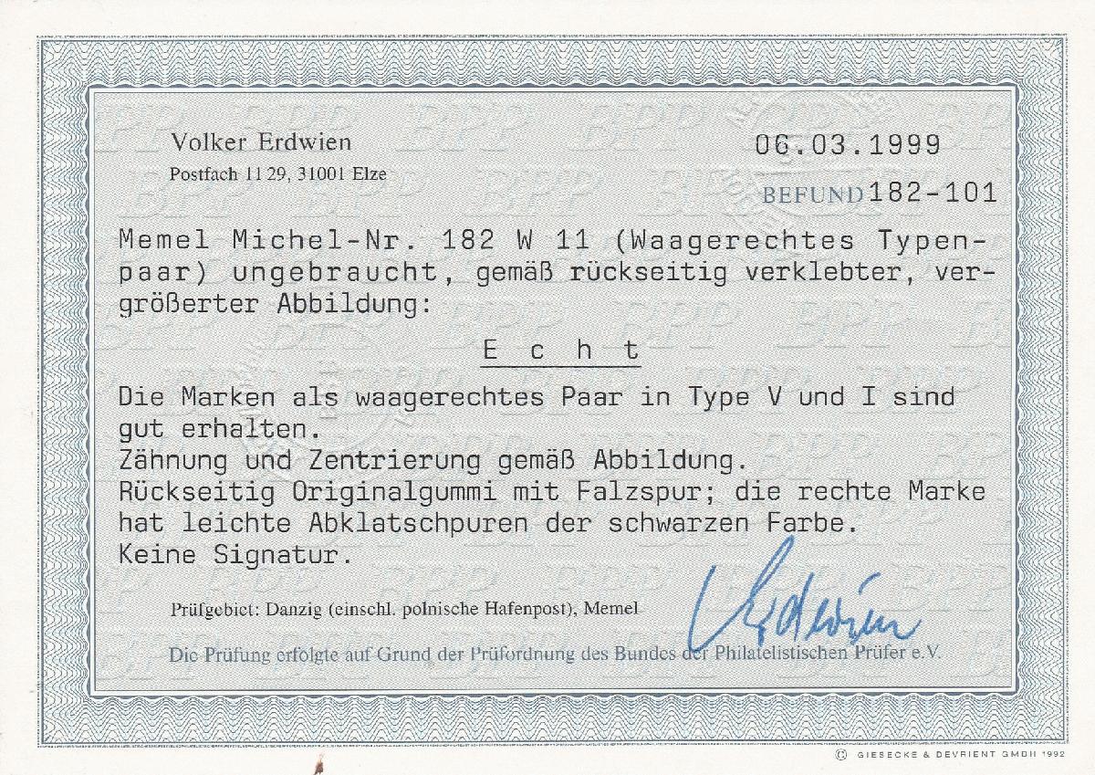 | Prüfer: | Erdwien, Volker (BPP (Bund Philatelistischer Prüfer)) |