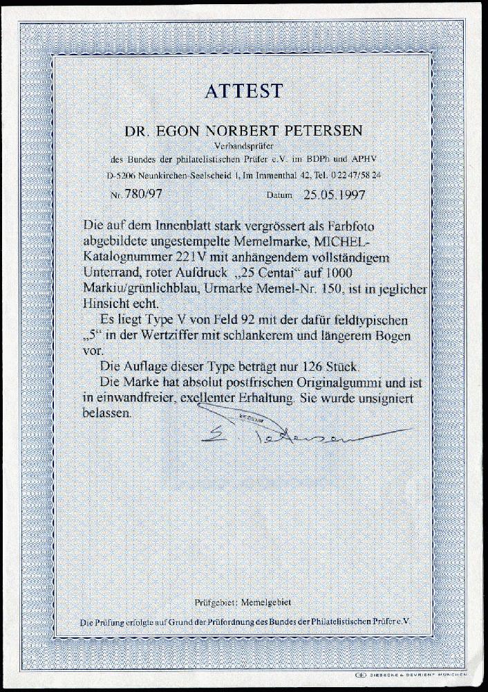 | Prüfer: | Petersen, Egon Norbert (BPP (Bund Philatelistischer Prüfer)) |