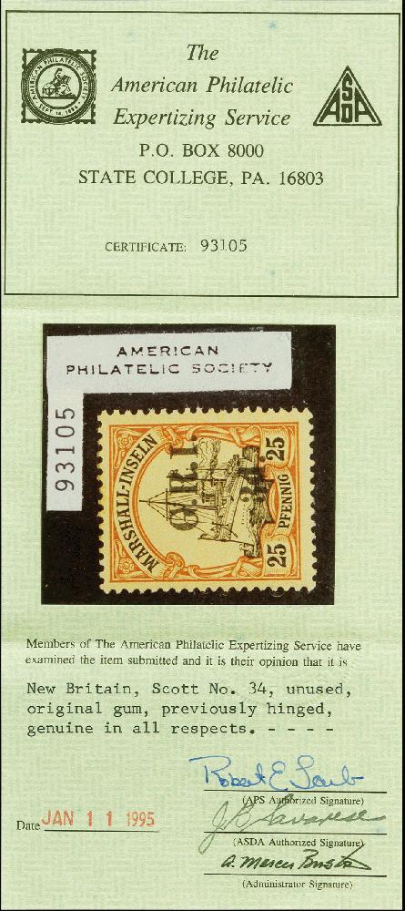 | Zusatzinformationen und Suchstichworte: | 383. Auktion Heinrich Köhler 14.–15. & 18.–23. März 2024 Los 7366 Deutsche Kolonien Marshall Brit. Besetzung 3 d. auf 25pfg. Position 8, farbfrisch und gut gezähnt, ungebraucht, Pracht, Attest APS (1995) Ausruf 100,00 EUR |