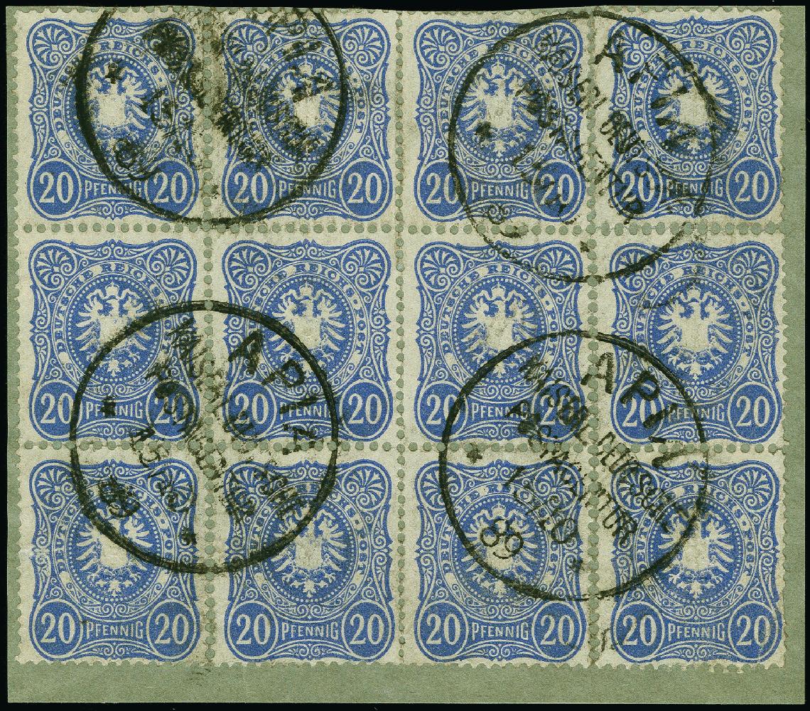 | Zusatzinformationen und Suchstichworte: | 383. Auktion Heinrich Köhler 14.–15. & 18.–23. März 2024 Los 7219 Deutsche Kolonien Samoa, Vorläufer 1886, 20 Pfennig dunkelultramarin im Neuner-Block, senkrechten Paar und Einzelwert mit Stempel "APIA KDPAg ** 15.10.89" auf Briefstück. Zwei Werte mit kleinen Fehlern, sonst in einwandfreier Erhaltung, ein optisch sehr ansprechendes Briefstück mit großer Einheit, Fotoattest Jäschke-L. BPP (2022) Ausruf 300,00 EUR |