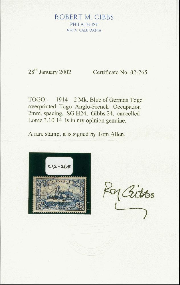 | Prüfgebiet: | Deutsche Kolonien Togo Britische Besetzung |