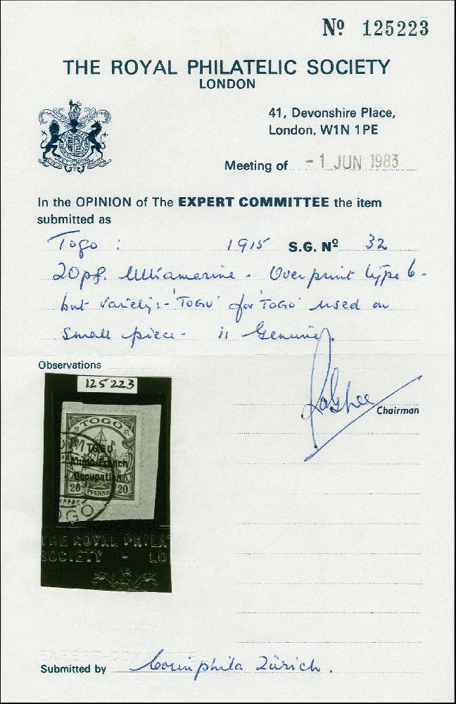 | Prüfer: | RPSL, Royal Philatelic Society (Prüferkommission) |