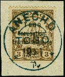 | Zusatzinformationen und Suchstichworte: | 383. Auktion Heinrich Köhler 14.–15. & 18.–23. März 2024 Los 7505 Deutsche Kolonien Togo Französische Besetzung 1915,05 (c. ) auf 3 pfg. Braun, farbfrisch und gut gezähnt, übergehend entwertet mit blauem Kreisdatumsstempel. "ANECHO 12/1" auf kleinem Briefstück, eine sehr schöne Stück dieser seltenen Marke, nur 61 gedruckt, eines der schönsten Exemplaren vorhanden Ausruf 1.000,00 EUR |