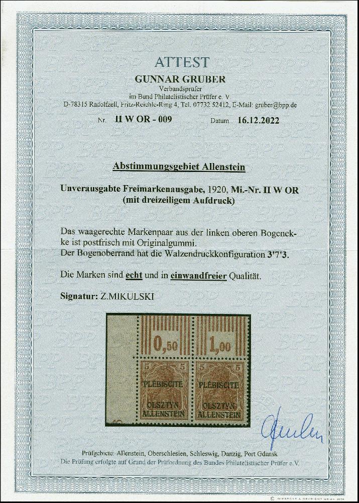 | Prüfer: | Gruber, Gunnar (BPP (Bund Philatelistischer Prüfer)) |