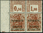 | Zusatzinformationen und Suchstichworte: | 383. Auktion Heinrich Köhler 14.–15. & 18.–23. März 2024 Los 7539 Allenstein Germania 5 Pfennig im waagerechten Paar aus der linken oberen Bogenecke mit Walzendruck-Oberrand mit der Konfiguration "3'7'3, postfrisch, in einwandfreier Erhaltung. Ausruf 100,00 EUR |
