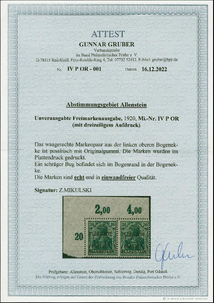 | Prüfer: | Gruber, Gunnar (BPP (Bund Philatelistischer Prüfer)) |