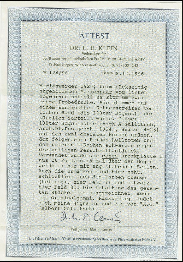 | Prüfer: | Klein, Udo E. (BPP (Bund Philatelistischer Prüfer)) |