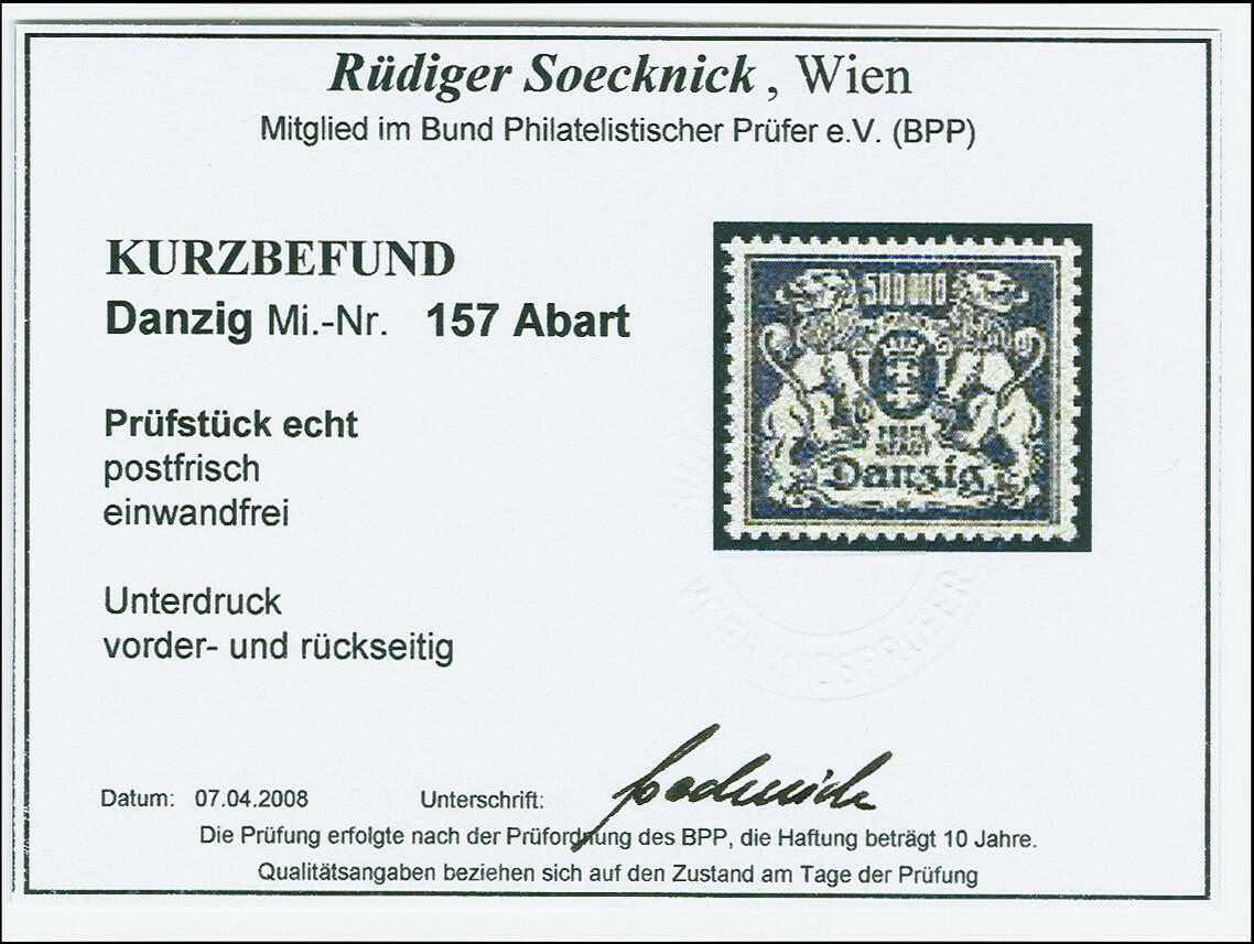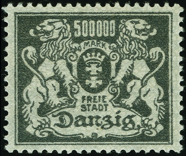 | Zusatzinformationen und Suchstichworte: | 383. Auktion Heinrich Köhler 14.–15. & 18.–23. März 2024 Los 2906 Danzig Großes Staatswappen 500000 M. mit Abart "doppelter Unterdruck - vorder- und rückseitig", tadellos postfrisch Ausruf 150,00 EUR |