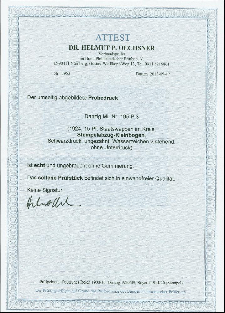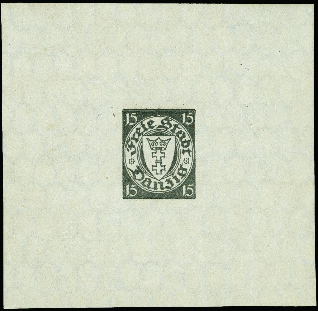 | Zusatzinformationen und Suchstichworte: | 383. Auktion Heinrich Köhler 14.–15. & 18.–23. März 2024 Los 2909 Danzig 15 Pfg., Probedruck in schwarz, ungezähnter Einzelabzug in Blockform auf Papier mit Wz. 2X (stehend statt liegend), ungebraucht ohne Gummierung, tadellos. Ausruf 250,00 EUR |