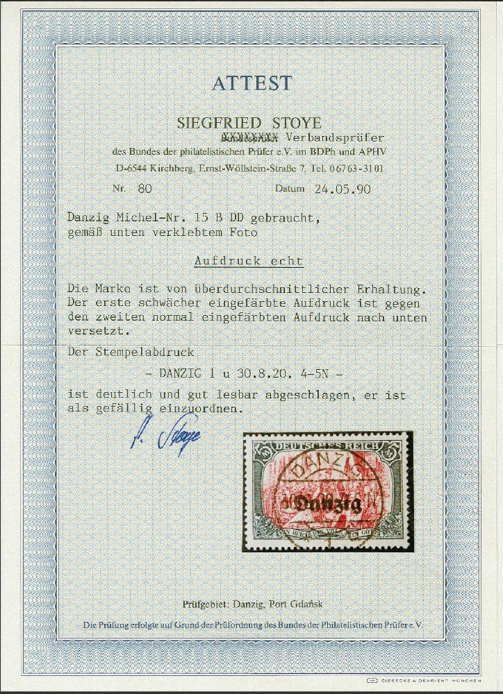 | Prüfer: | Stoye, Siegfried (BPP (Bund Philatelistischer Prüfer)) |