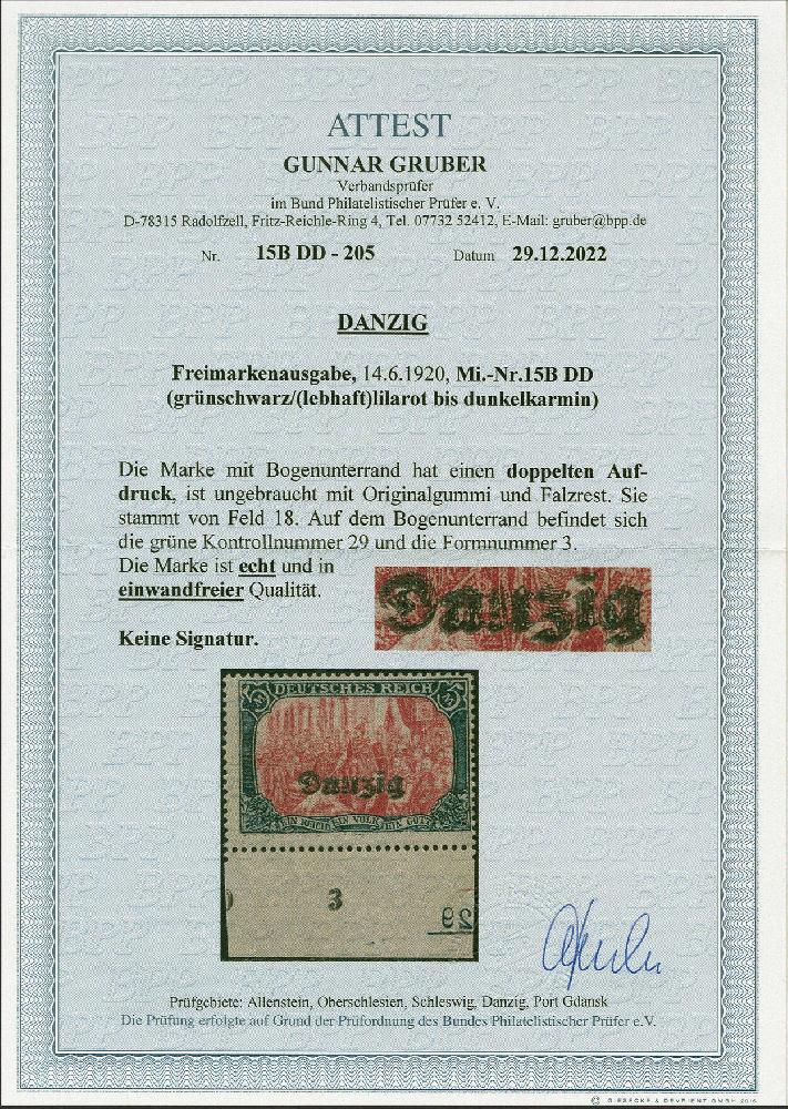 | Prüfer: | Gruber, Gunnar (BPP (Bund Philatelistischer Prüfer)) |