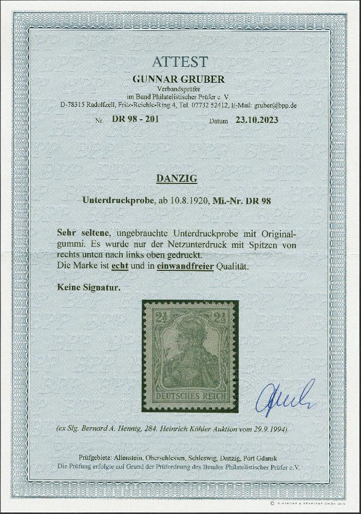 | Prüfer: | Gruber, Gunnar (BPP (Bund Philatelistischer Prüfer)) |